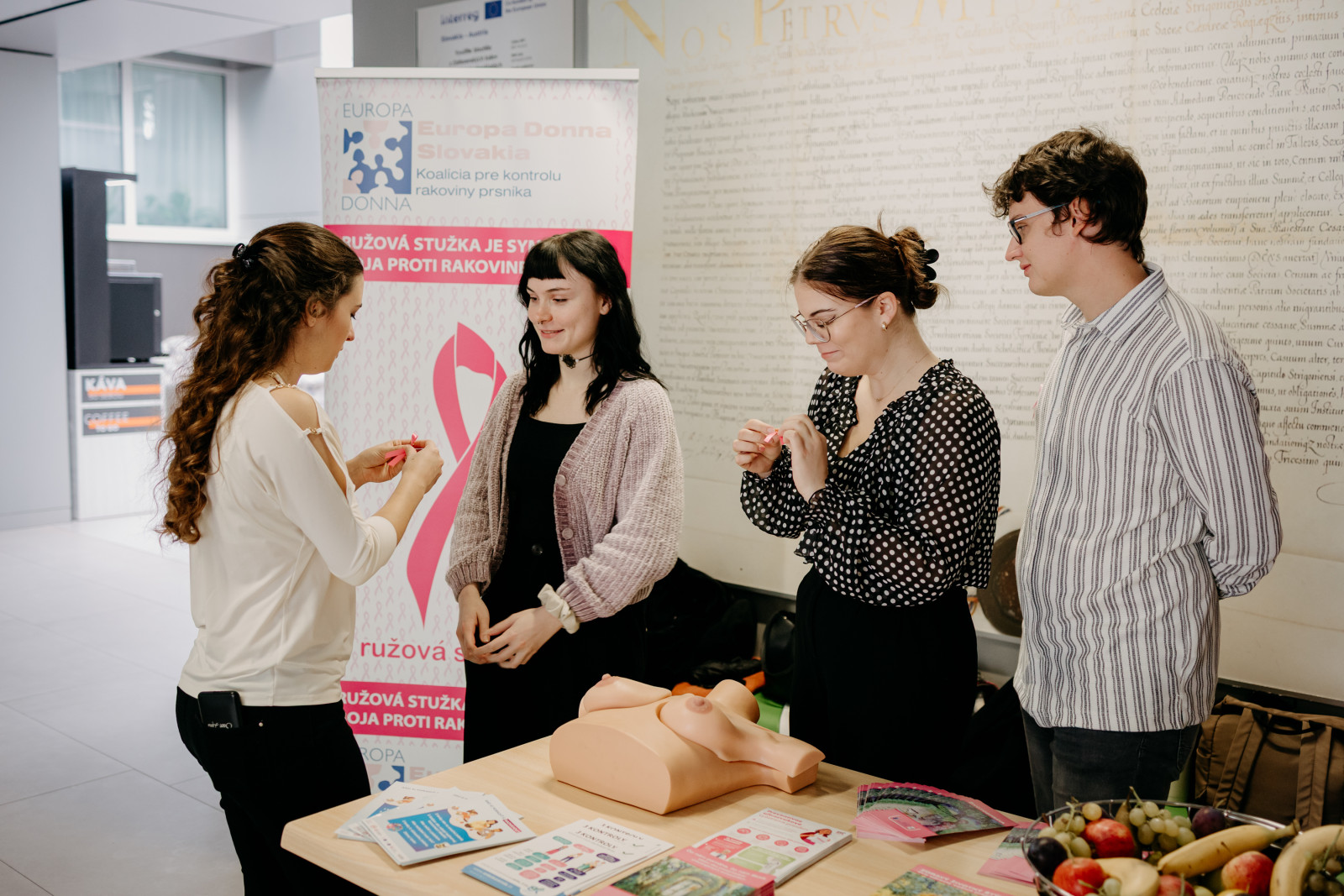 Študenti vedomosti o ochorení, dôležitosti prevencie a samovyšetrovaní prsníkov odovzdávali študentom, pedagógom a zamestnancom Trnavskej univerzity. Cieľom bolo šíriť informácie, ktoré môžu zachrániť život.